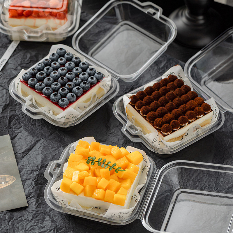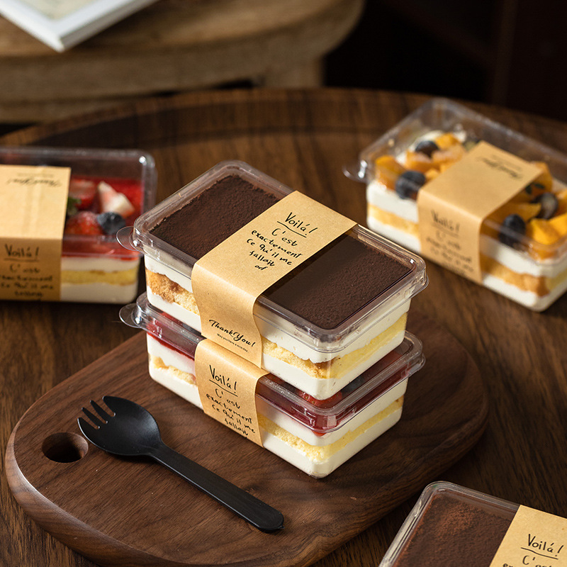 ティラミスボックス透明蓋付き豆乳フルーツクリームケーキ包装デザート包装長方形使い捨て