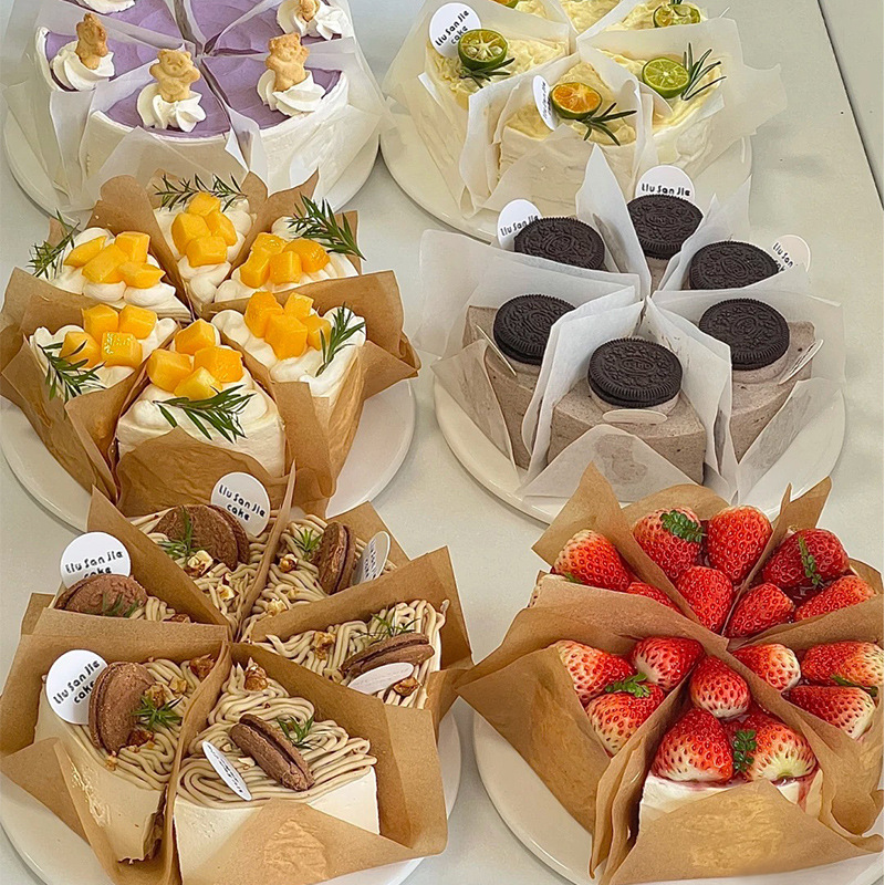ロールケーキ包装箱、カットロール、パフ、ミートフロス、小貝もちビスケット、桃ケーキ、焼き菓子包装箱