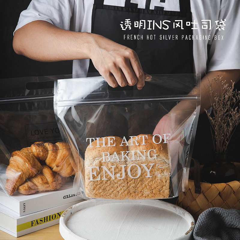 手提げ透明生トースト包装袋450gグラムスライスジッパー式高級自己密封焙煎パン袋
