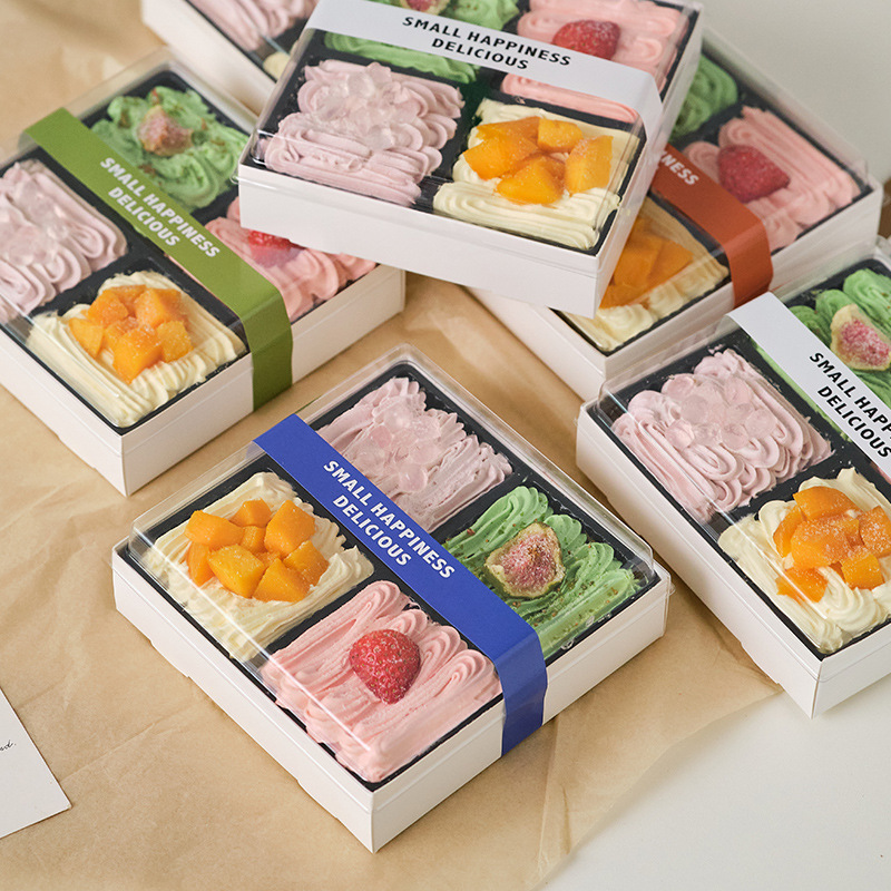 網紅四相歓喜ケーキ箱甜品箱ティラミス四宮格果物焙煎包装使い捨て
