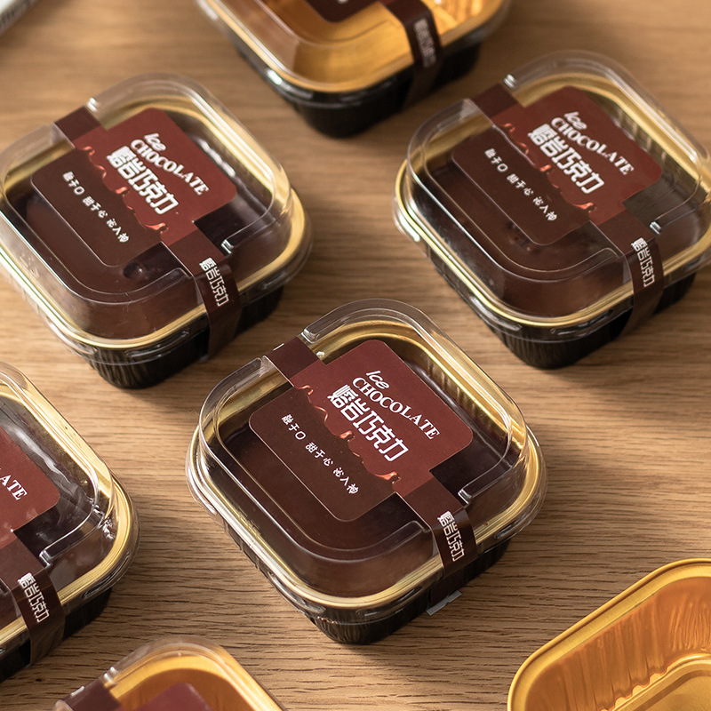 2025年新型アルミホイルケーキボックス、透明蓋付き、耐高温、氷山溶岩型、ベーキングデザート包装箱