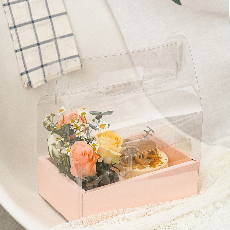 愛人の花のケーキの一体箱は透明な4寸の七夕の母の日の焙煎包装のデザートの箱のケーキを持ちます。