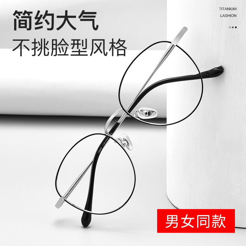丹陽メガネ女15343p学生小顔メガネフレーム女の子素顔メガネフレームレトロ超軽量純チタンメガネフレーム