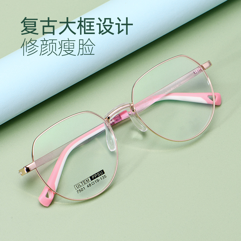 レトロ眼鏡7501sフレーム卸売り金属合金眼鏡フレーム少女近視眼鏡に度数鏡フレームを合わせることができる
