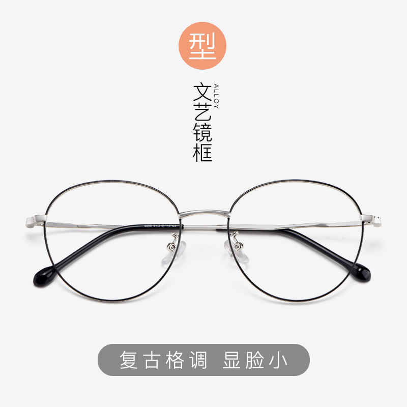 丹陽眼鏡6605レトロ眼鏡円形額縁超軽量眼鏡フレームファッション金属眼鏡フレーム女性近視鏡