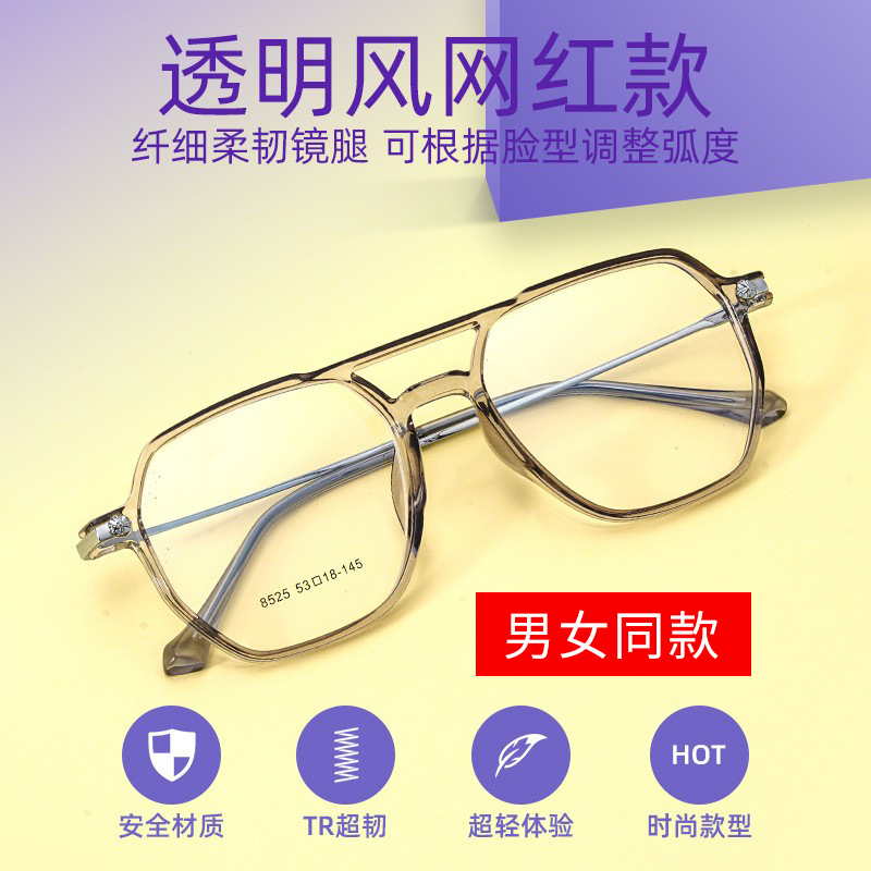 Tr90透明メガネフレーム8525yf装飾メガネフレーム女性レトロダブルビーム大フレームメガネフレーム超軽量近視メガネ