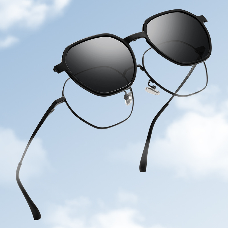 丹陽メガネ新型マグネットサングラス86007多角形レトロ近視眼鏡枠女性金属眼鏡フレーム