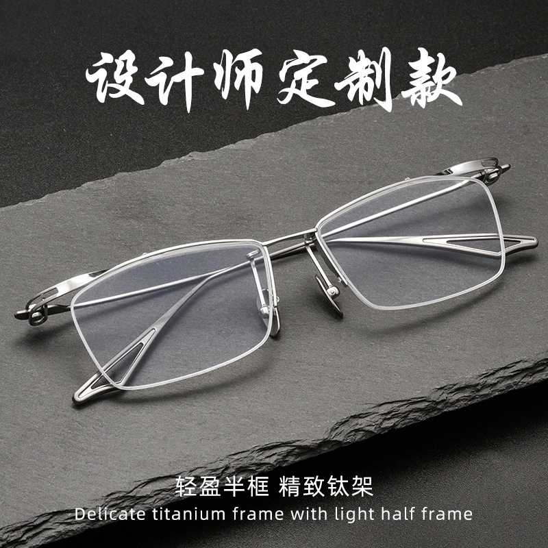 ブレード戦士フレーム8グラム超軽量純チタン眼鏡フレーム男性大顔トレンド眉線フレーム眼鏡フレーム半フレーム