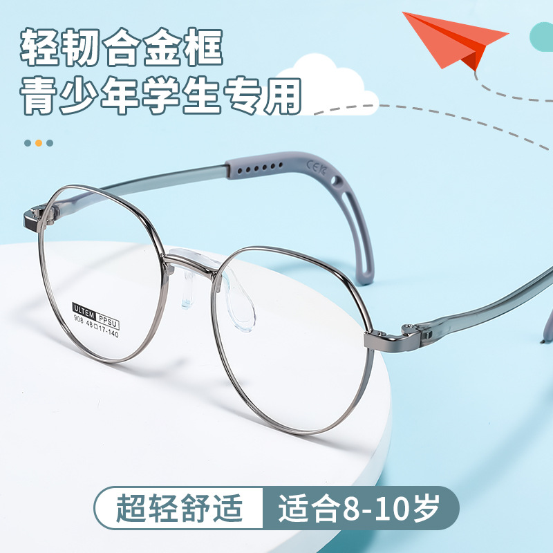 青少年児童学生合金レトロシリコン眼鏡フレーム調節テンプル付き丹陽908LR