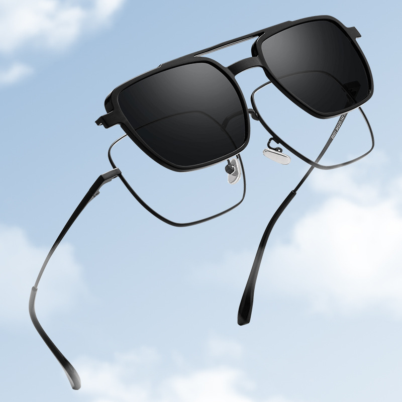 磁気吸引カバーミラー86006ダブルビーム男性操縦鏡非磁性チタン合金眼鏡フレーム超軽量近視眼鏡偏光