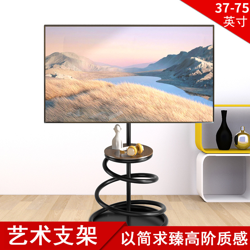 三策芸術床置きハンガー55/65/75インチテレビスタンド実木トレイ回転縦型移動カート