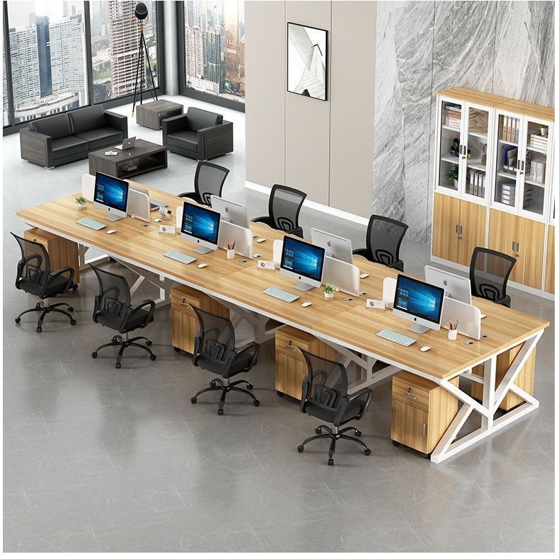 スタッフデスクとチェアの組み合わせオフィスコンピュータデスクシンプルモダンな4人または6人用スクリーンデスクスタッフステーション