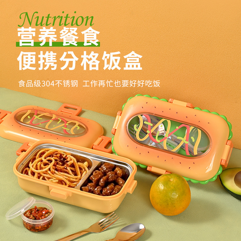 漫画 304 ステンレス鋼ランチボックス食器付き子供用ランチボックス食品グレードのビッグマックバーガー密封ランチボックス
