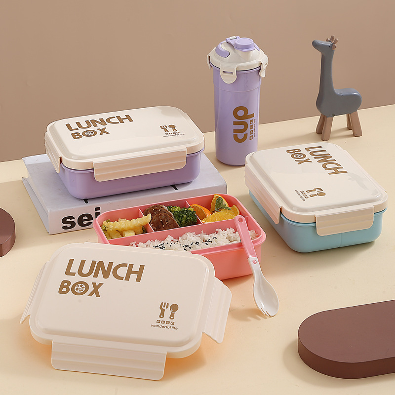 4格別コップセット弁当箱屋外ピクニックサラダフルーツ箱電子レンジ加熱弁当箱食器付き