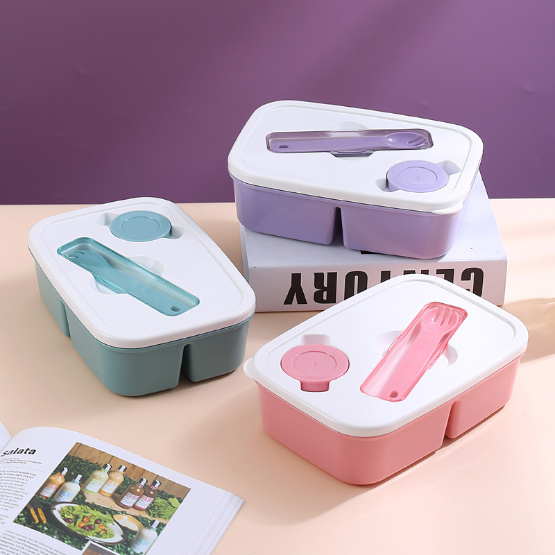 シンプルな二重弁当箱サラリーマン学生の新鮮保持弁当箱は電子レンジ多機能フォークスプーン弁当セットに入ることができる