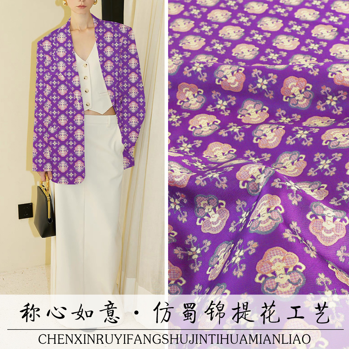 「TY007 花を観る」新しい模造蜀錦服生地ジャカードサテン生地ジャケットトップ漢服