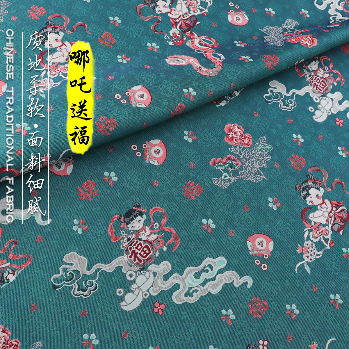 「TY016 哪吒の祝福」中国の流行模造蜀錦生地、ベストやチャイナドレス用の錦織生地