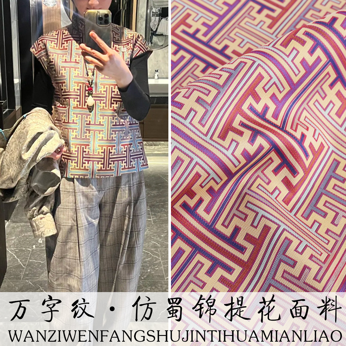 「TY010万字柄」中国風模造蜀錦生地トップジャケット生地衣類生地錦織生地