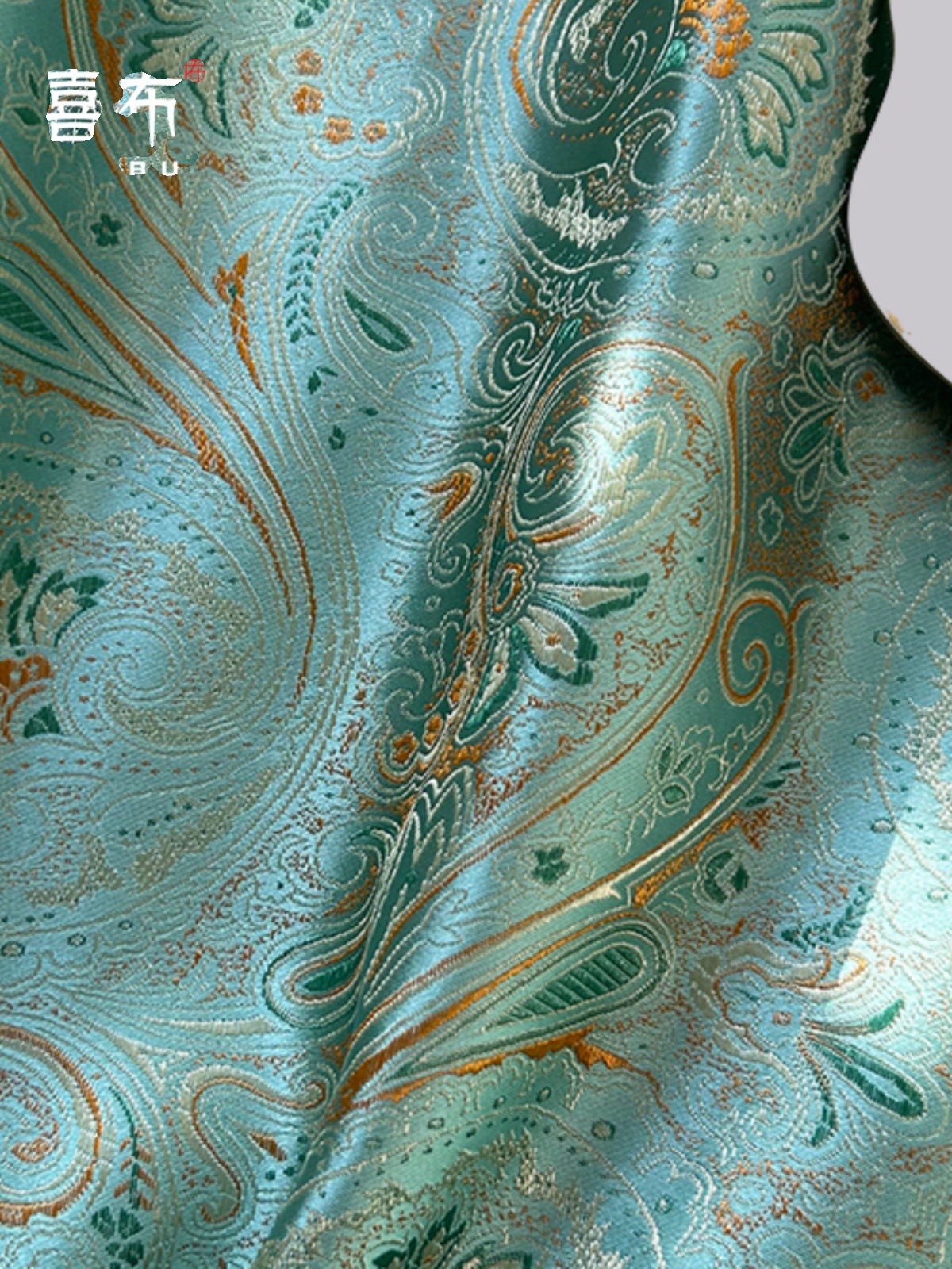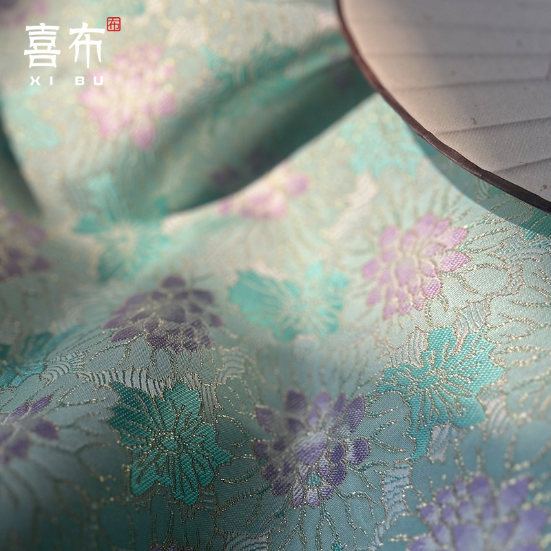 アクアブルー琵琶柄異光錦織生地シルクサテン新年チャイナドレスベスト中国風デザイン生地