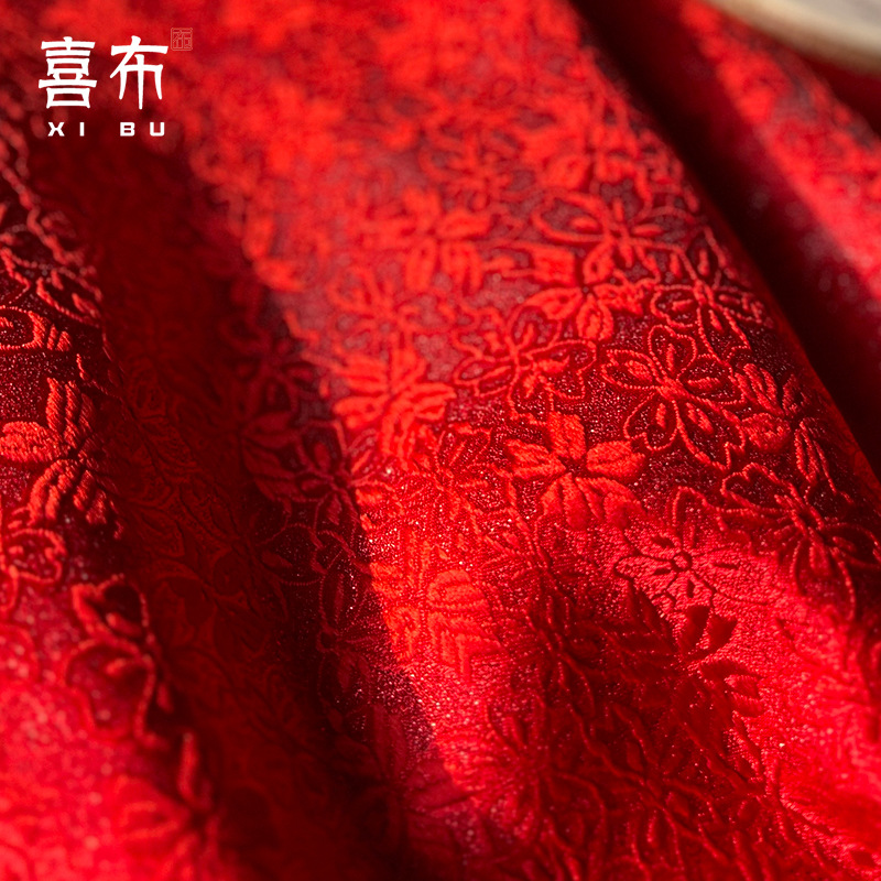 レッドゴールドビッグレッド立体レリーフブライダル桜の花ジャカード生地チューブトップスカートドレスコート衣類生地