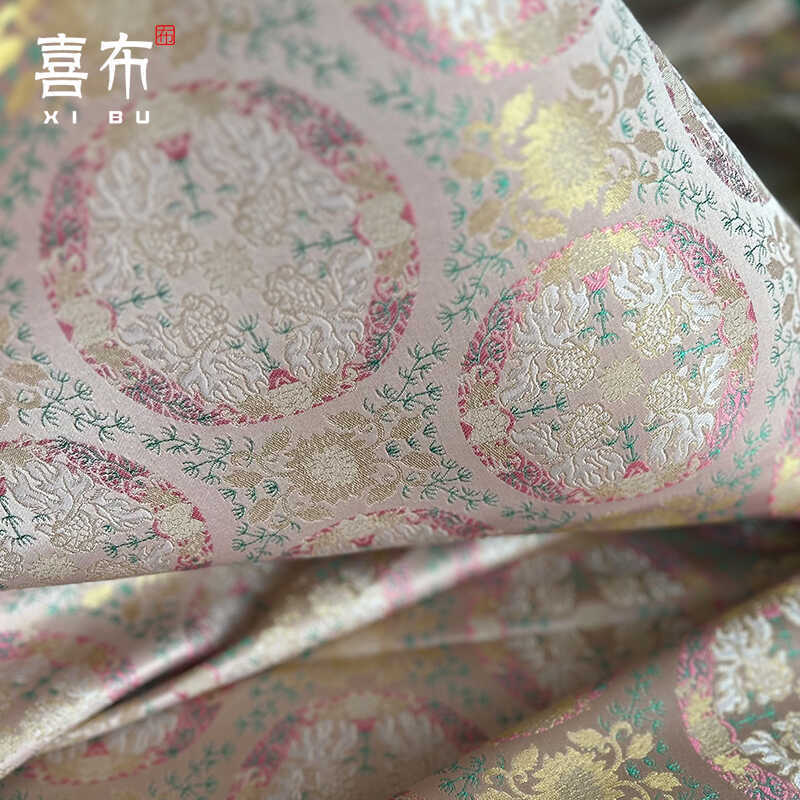 高密度ナイロンサテン布祥雲パターン漢服チャイナドレスシルク生地手作り DIY ゴールドバッグ錦織生地