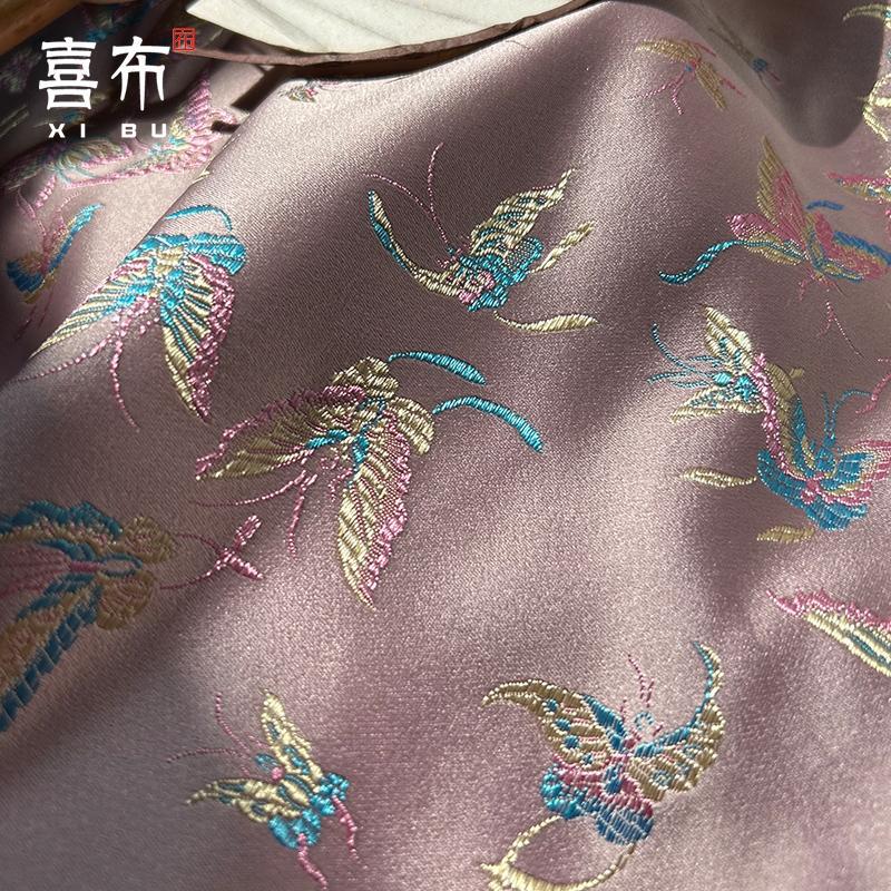 ピンク蝶錦生地テーブルクロス COS 衣類 DIY 蝶絵服甘いベスト韓服生地