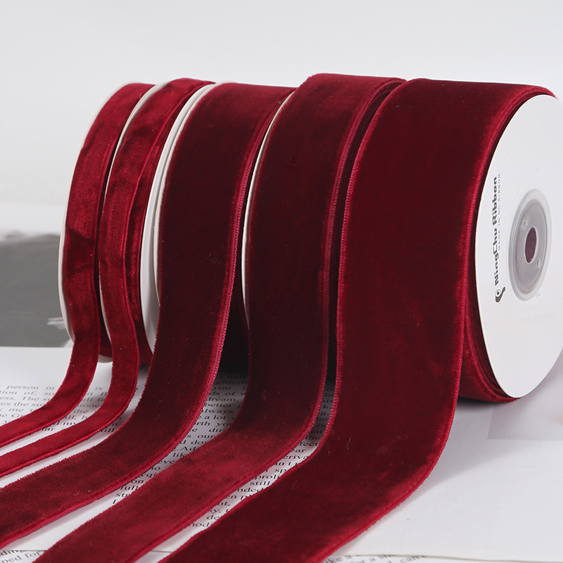 ワインレッド両面ベルベットリボンベルベット植毛リボン diy 手作り弓花束包装ギフトベーキング
