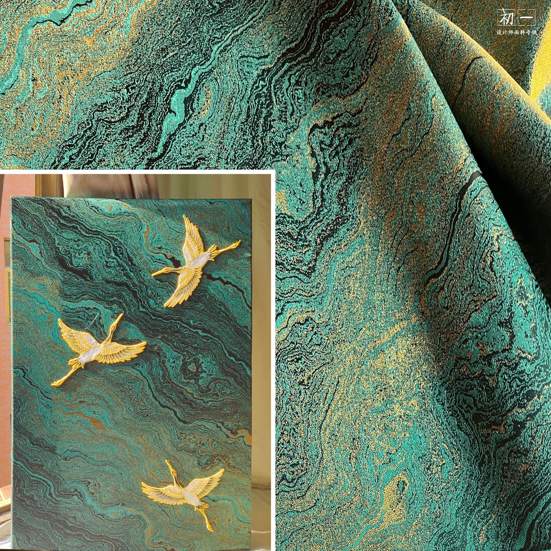 グリーンレトロ中国風金箔織錦ジャカード生地抽象的なテクスチャ中国風 diy 装飾絵画デザイナー生地