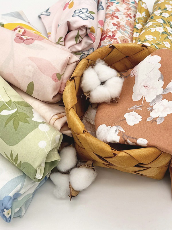 人造綿生地、肌に優しい綿シルクパジャマ、衣料品生地、綿シルク生地、プリント生地、レーヨン布片処理
