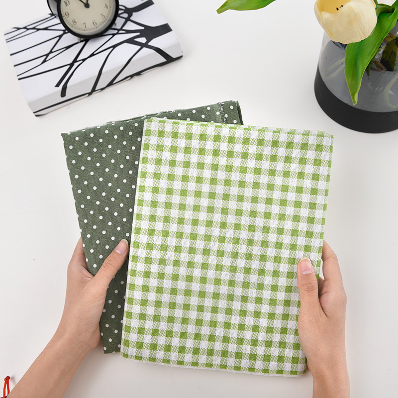 綿とリネン生地グリーンチェック柄テーブルクロス花柄リネンカーテンソファ背景布diy布ヘッド処理