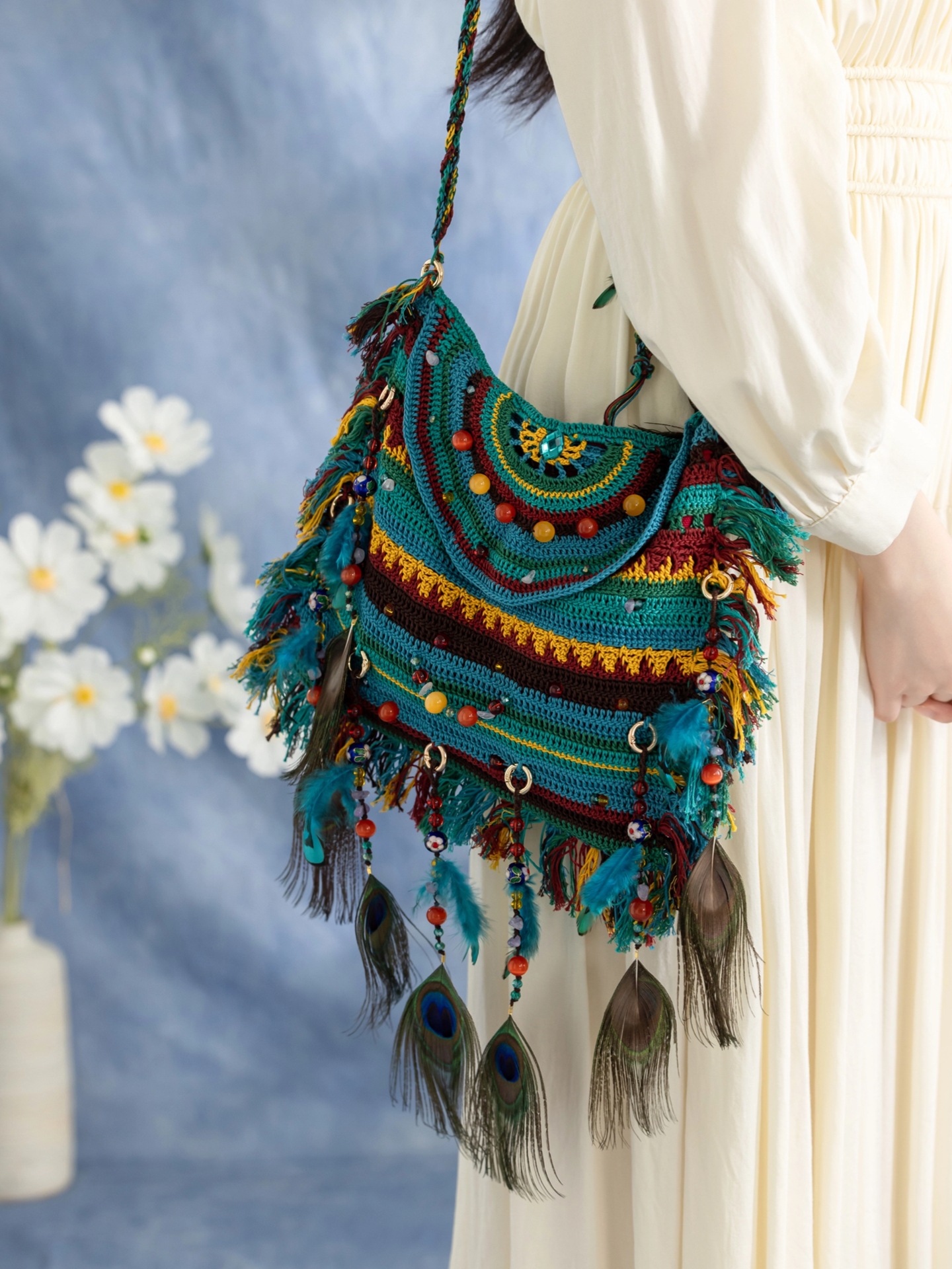 スースー姉妹の鳥の羽ビーズバッグ手作り DIY かぎ針編みウールボール自家製バッグ素材バッグ