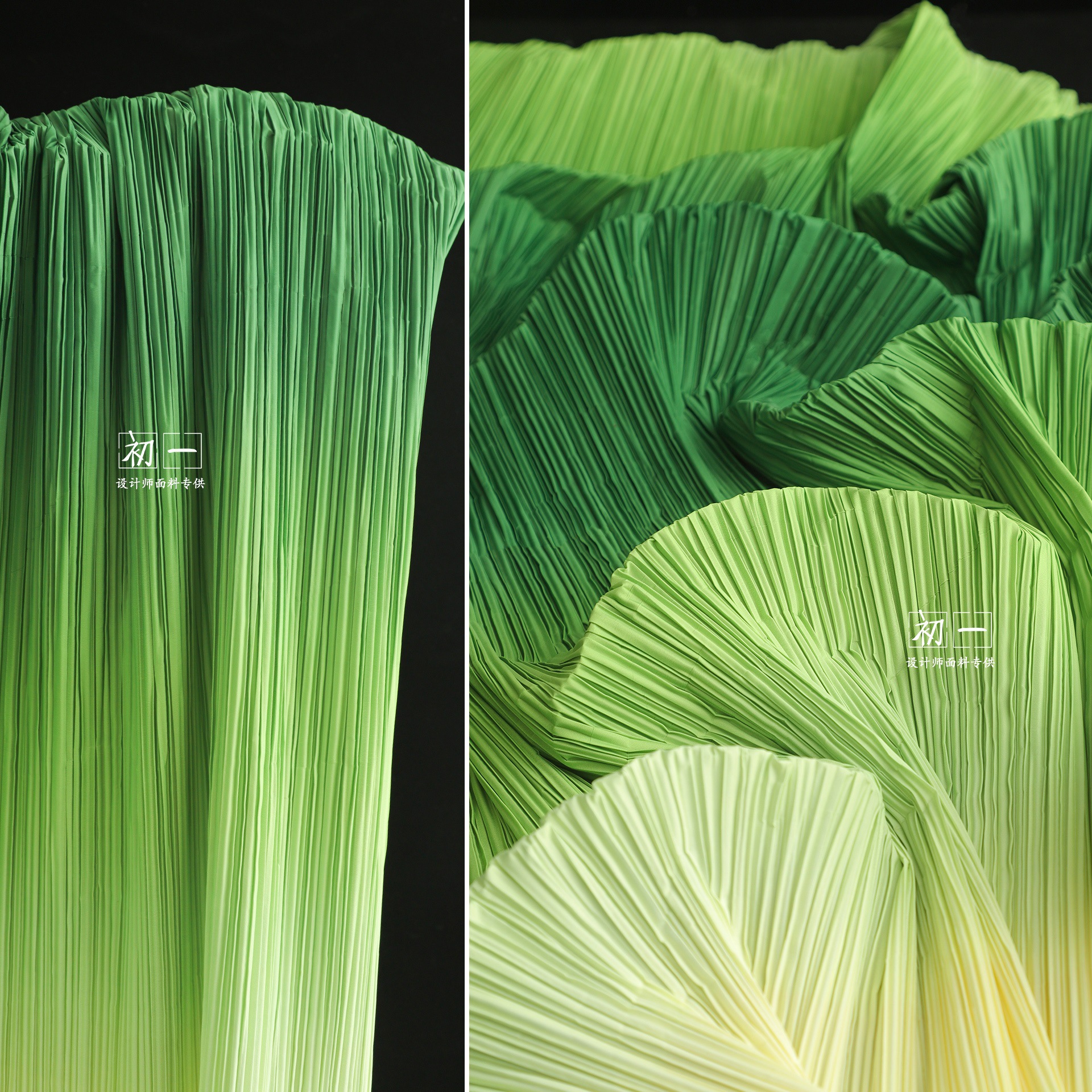 緑と黄色のグラデーション三宅プラスチックプリーツ生地手作り DIY テクスチャ背景装飾絵画衣類デザイナー生地