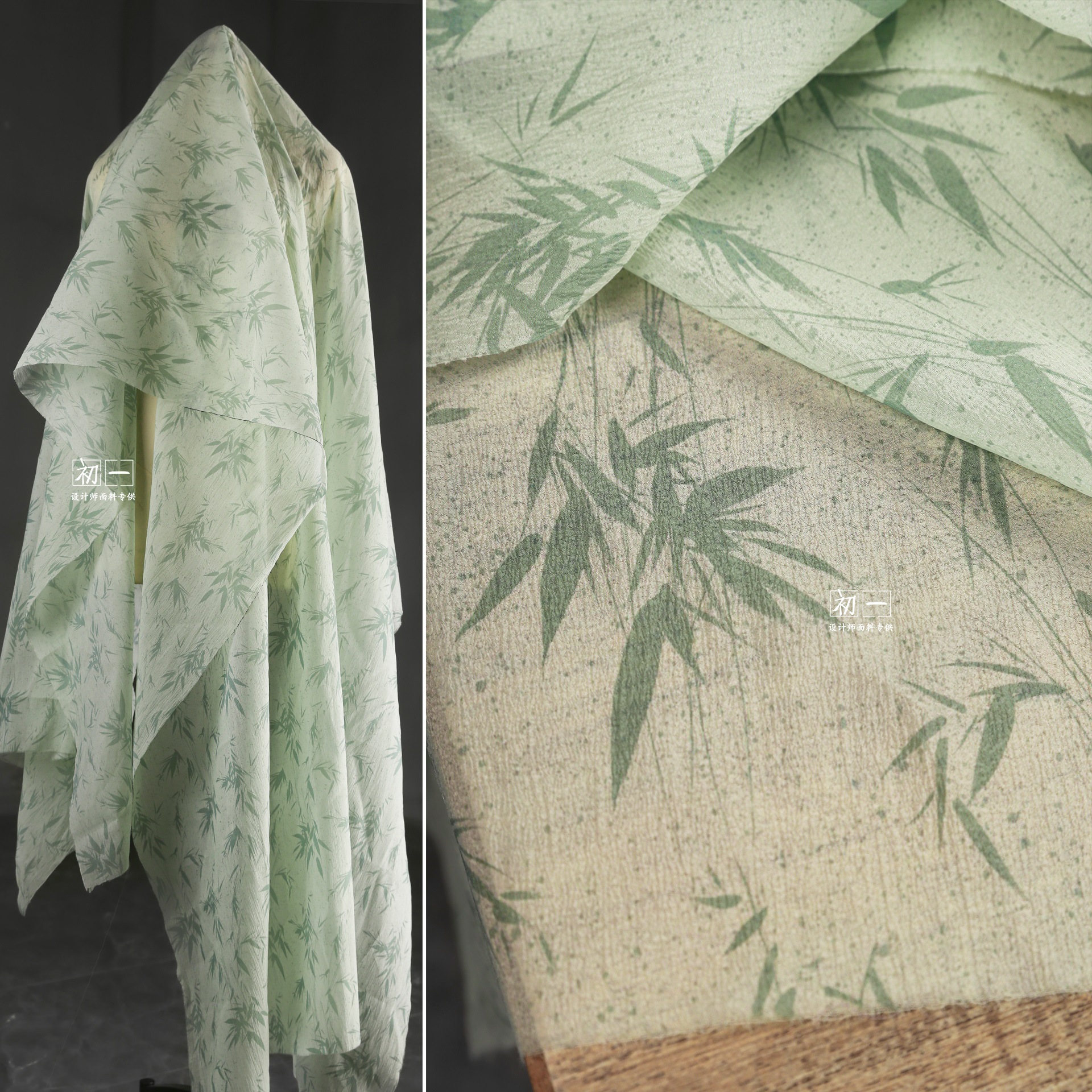 竹の葉グリーン半透明ガーゼスカート生地植物プリントと染色テーブルクロス中国風漢服カーディガン衣類デザイナー生地