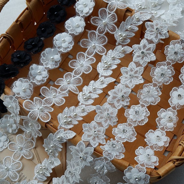 レース輸出絶妙なメッシュポリエステル刺繍ビーズレースフラワー DIY 素材ジュエリーネックレスウェディングドレスアクセサリー