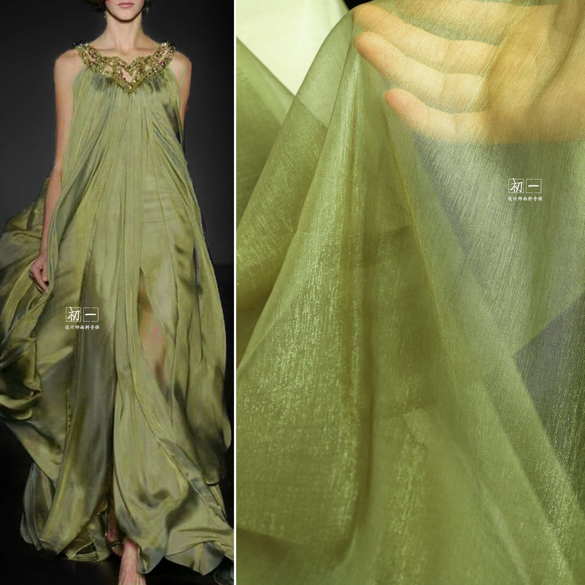 グリーンのマイクログリッターシフォン半透明シルク繊細で柔らかいショールドレスベールデザイナー生地