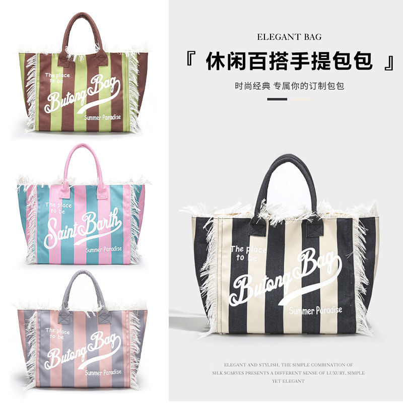 カスタマイズされた既製のレディースバッグヨーロッパとアメリカのビーチ大容量ショルダー通勤バッグ手作りタッセルデニムプリントトートバッグ