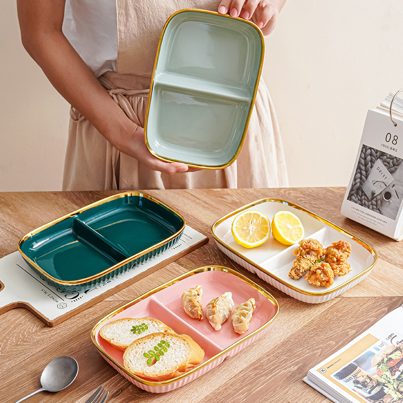大人用セラミック分割ディナープレート、フルーツ朝食プレート、1人用2分割プレート、高級感