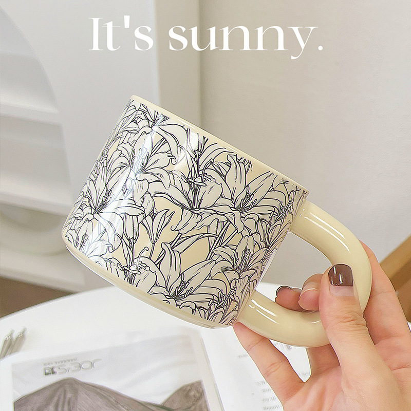 フランスのアイリスセラミックマグ、見栄えの良い黒と白の朝食カップ、ドリンクカップ、見栄えの良いカップ、親友カップ