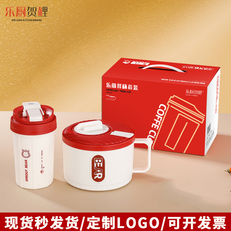 2024 年ドラゴンダブルドリンクカップボウルセットコーヒーポットカップインスタントラーメンボウルコンビネーションセット 304 ランチボックスビジネスギフト