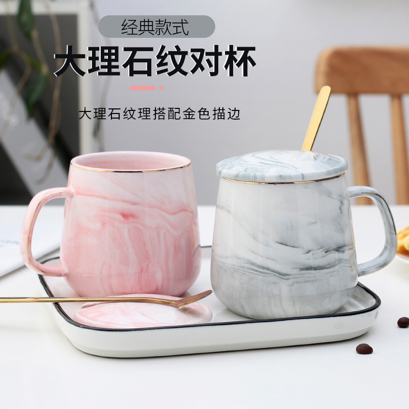 大理石マグカップクロスボーダーセラミックカップギフトボックスコーヒーカップカップルクリエイティブスプーンウォーターカップ蓋付き