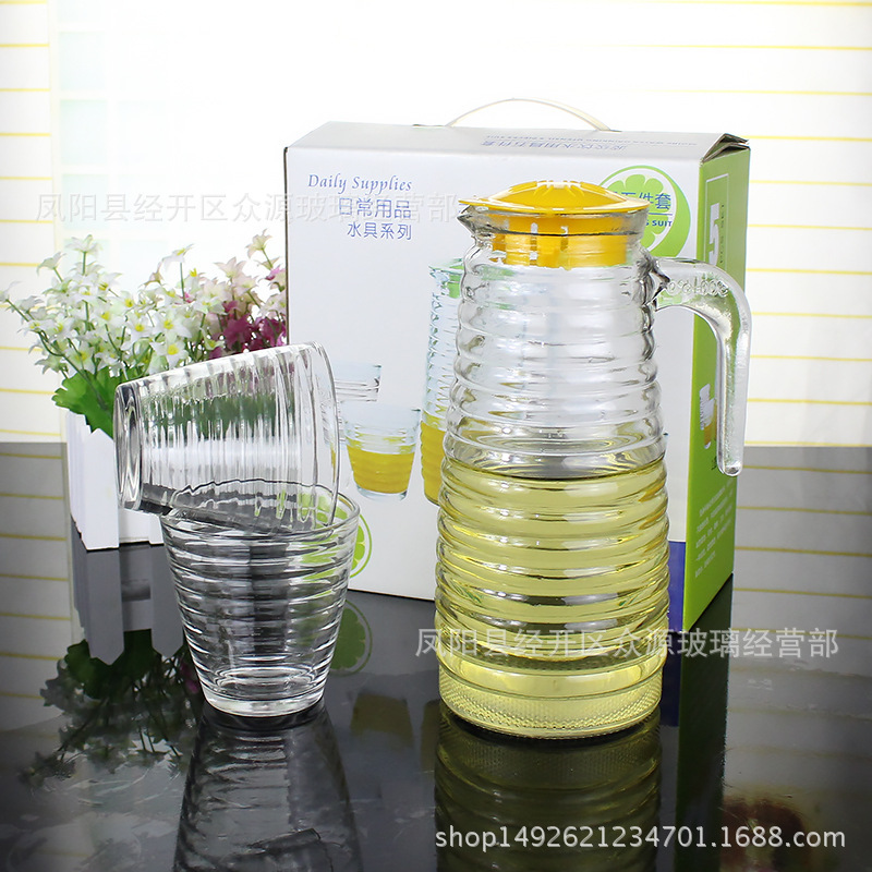 波纹玻璃冷水壶套装批发大容量茶水壶果汁壶玻璃杯开业礼品水壶
