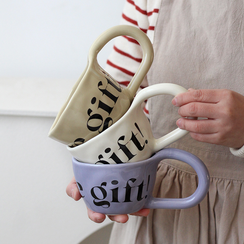韓国セラミックマグ、クリエイティブでパーソナライズされた手で握る大きなセラミックマグ、英語コーヒーカップ、家庭用飲料水ティーカップ