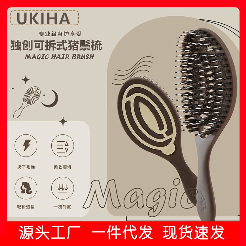 Ukiha多機能の豚のたてがみは透かし彫りの骨をとかして豚のたてがみをとかしてマッサージします。