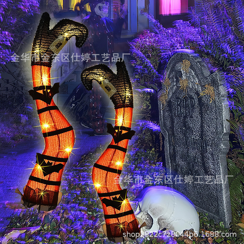 国境を越えたハロウィーン屋外パーティーお化け屋敷花園発光邪悪なオレンジ色の魔女脚アクリル装飾プラグイン