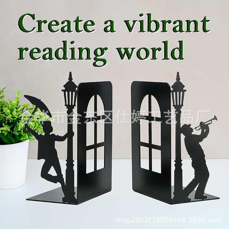 越境新品金属街灯男人傘金属ブックエンド収納ブックシェルフ鉄芸創意ブックエンド