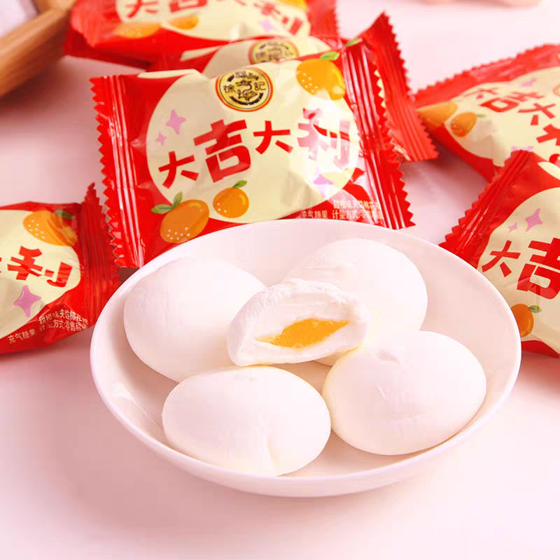 徐福記大吉イタリアの甘いオレンジの味は餡のマシュマロを挟んで散称します。