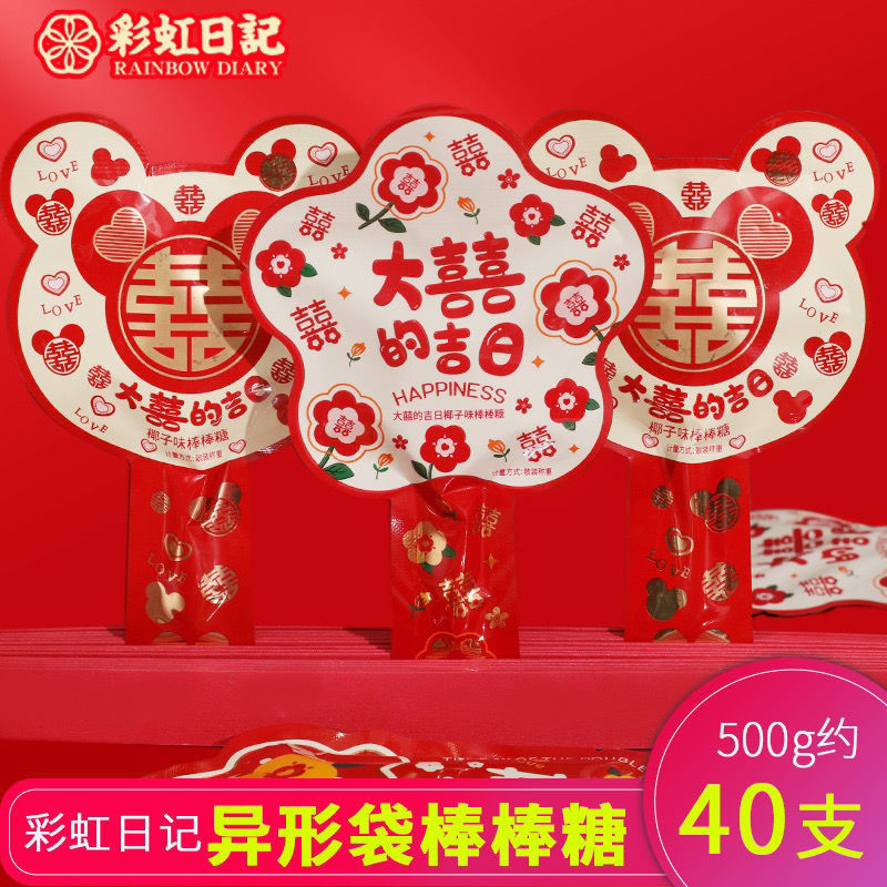 虹の日記の大喜びの吉日ココナッツの味のロリポップの500gのアイデアの結婚の喜糖の果実の結婚の砂糖の間食のばら売り