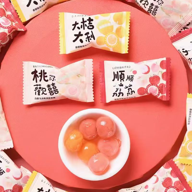 ネット紅喜糖龍客流心爆糊ソフトキャンディ散称500gサンドイッチジュース果味ソフトキャンディ結婚喜糖包郵便