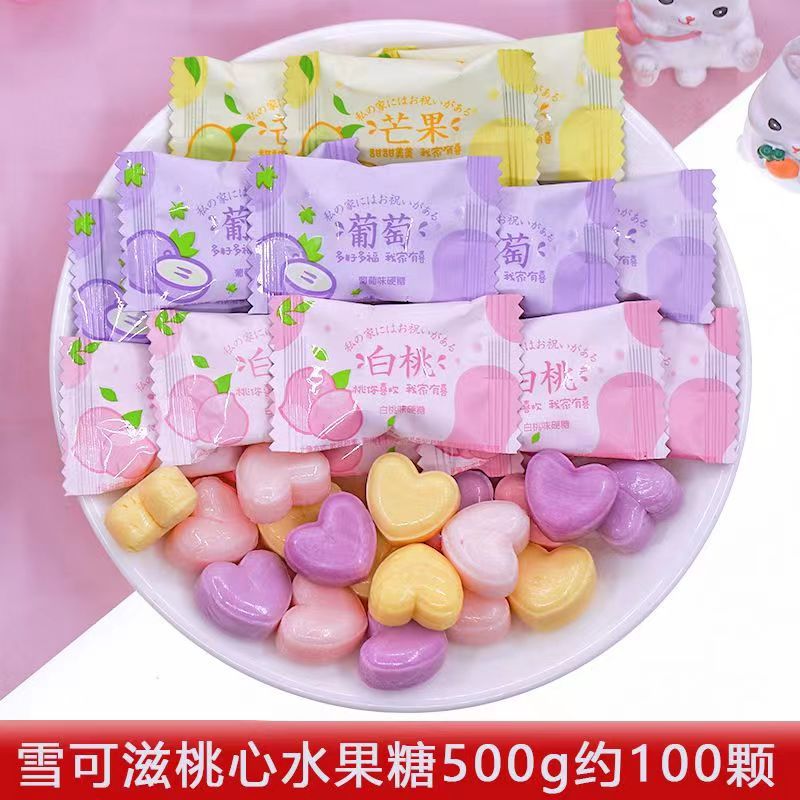 ネット赤間食白桃ジュース硬糖水蜜桃味散糖500g結婚喜糖果創意招待キャンディー