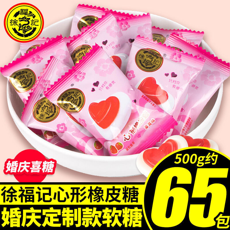 徐福記ハート型グミいちご味散称500gウェディングキャンディー間食品結婚喜糖qq糖ソフトキャンディ